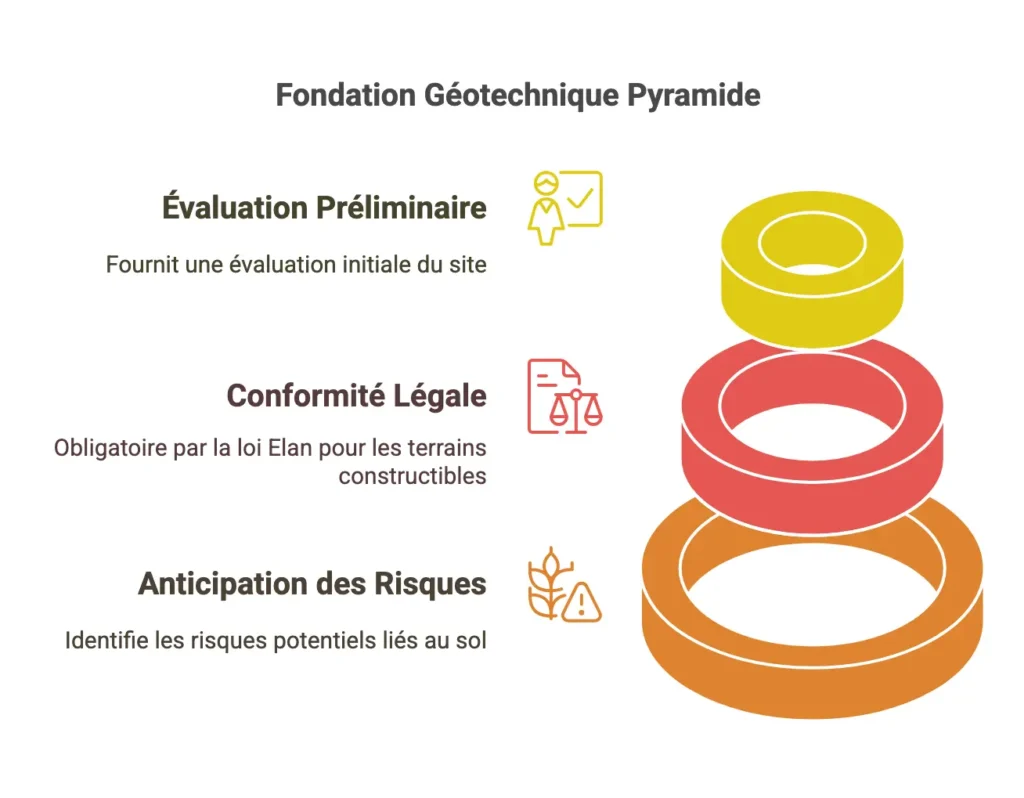 Cette phase élabore un modèle géologique préliminaire et évalue les risques géotechniques potentiels. Elle inclut l’analyse des résultats de l’Étude de Site et peut comprendre des investigations géotechniques, afin de préparer un rapport synthétique sur les caractéristiques du sol.